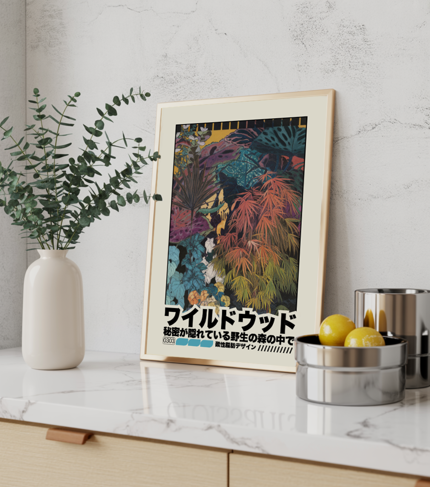 The signature piece from the Wildwood collection, this print is a visual nod to the Japanese concept of "Forest Bathing." The rich, textural layers and soft, earthy tones evoke the feeling of being completely immersed in a quiet, secret garden. It's a perfect statement piece for anyone who finds beauty in the unknown and a sense of calm in the natural world.